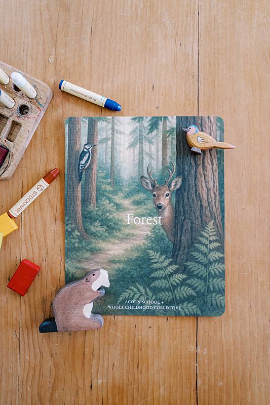 Acorn School and Whole Childhood Collective offer a seasonal, bilingual curriculum featuring Waldorf-inspired unit studies that include unique stories, songs, and flashcards. Each unit comes with a “Dear Reader” page filled with enrichment ideas, handcraft instructions, and a curated book list. Materials and books can be purchased through their Instagram @acorn_school, and everyone is welcome to explore this curriculum, even if they’re not Acorn School students.